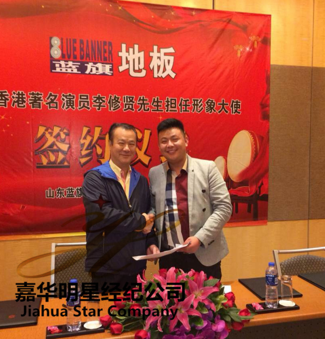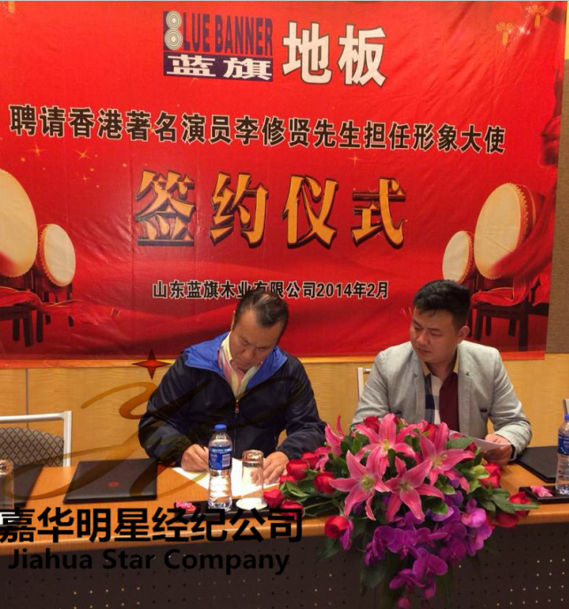 2014年2月18日,山東藍旗木業(yè)有限公司通過嘉華明星經(jīng)紀(jì)公司聘請香港著名演員李修賢擔(dān)任其旗下藍旗地板形象大使,簽約儀式深圳羅湖香格里拉舉行。